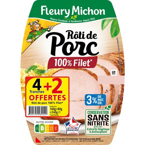 Fleury Michon Rôti de porc 4 tranches + 2 gratuites