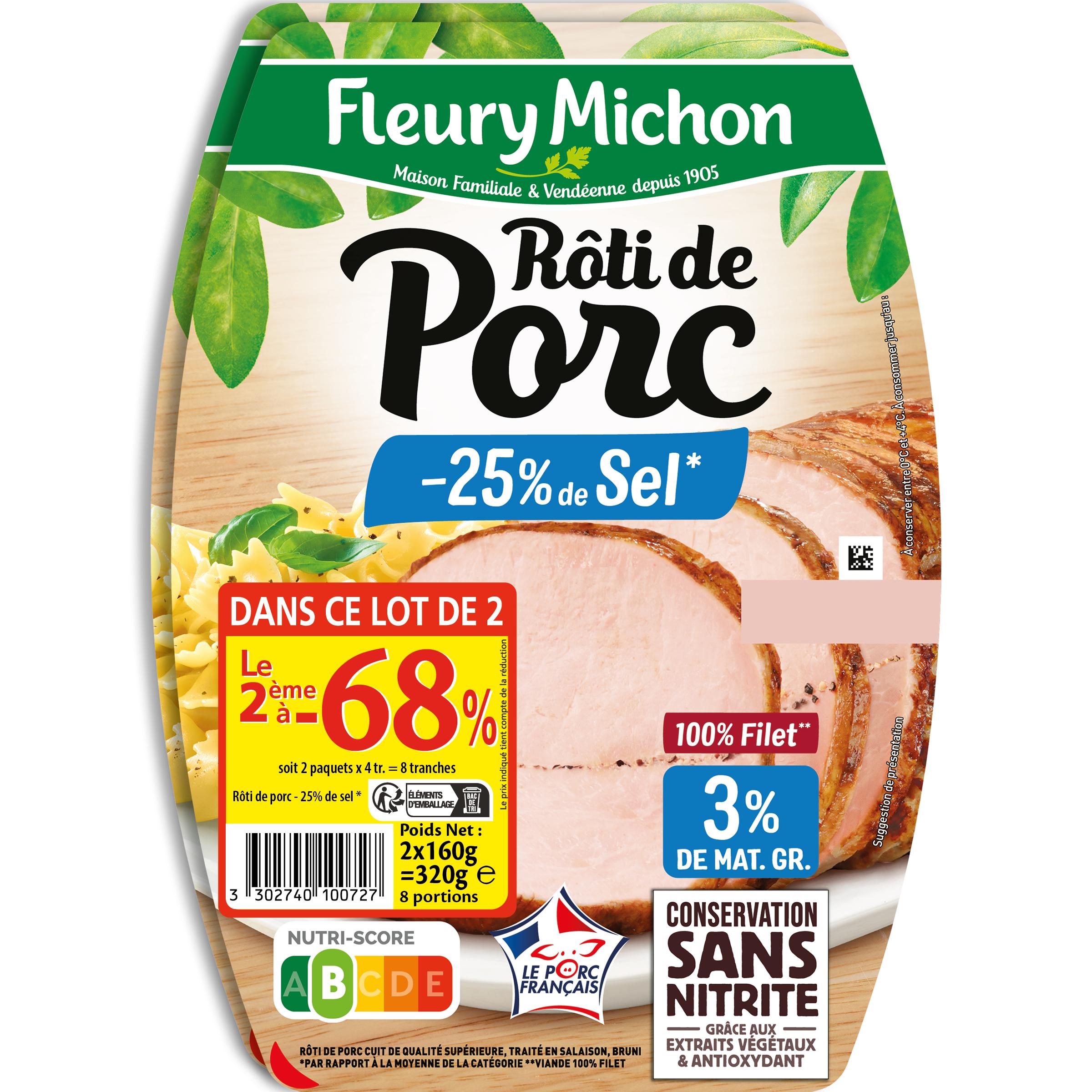 Chez Fleury Michon, notre rôti est cuisiné avec 25% de sel en moins* et cuit lentement à l'étouffée avec des bouillons pour révéler toutes ses saveurs. *Par rapport à la moyenne de la catégorie.