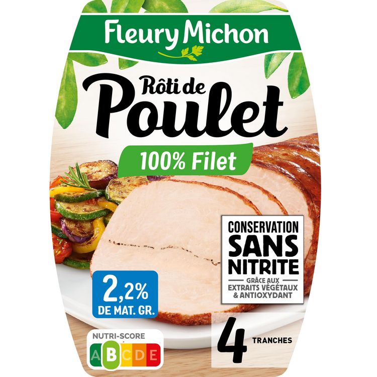 Découvrez notre rôti de poulet 100% filet garanti Conservation Sans Nitrite*, préparé avec sa ligne de poivre et son bouillon puis cuit lentement à l'étouffée pour plus de tendreté et de saveurs. *grâce aux extraits végétaux et antioxydants