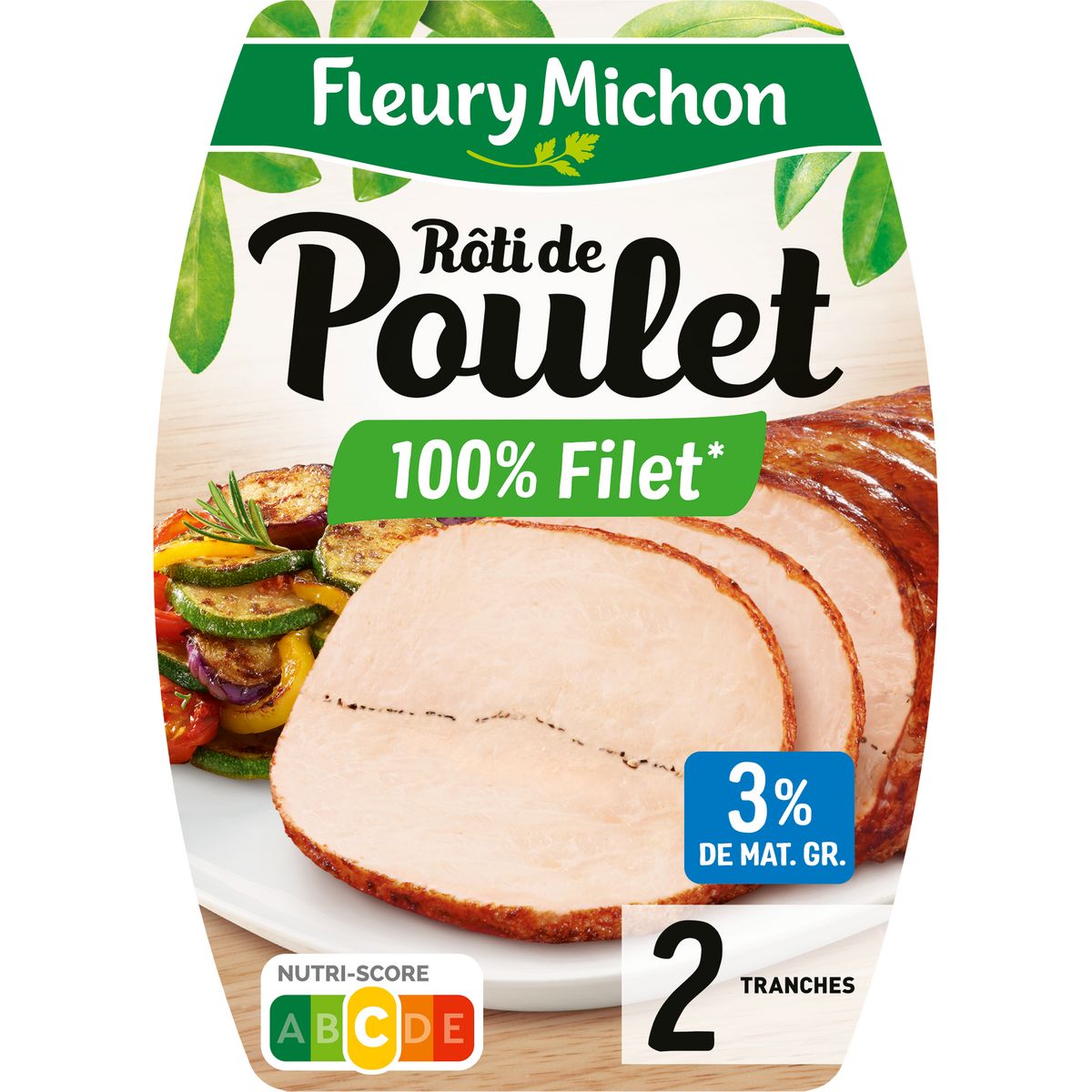 Rôti de poulet cuit, traité en salaison, bruni et doré au four