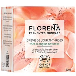 La crème de jour anti-rides FLORENA Fermented Skincare contient du chèvrefeuille fermenté, de l'huile d’olive fermentée et de l'acide hyaluronique. Elle améliore la fermeté et l'élasticité de la peau. Votre peau est douce, souple et parait plus jeune.