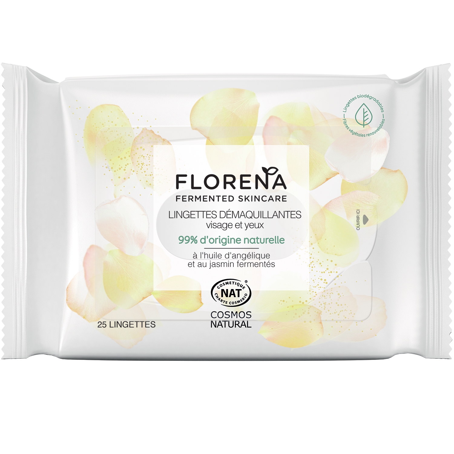 Les lingettes démaquillantes pour visage et yeux FLORENA Fermented Skincare contiennent de l'huile d’angélique et du jasmin fermentés. Elles démaquillent délicatement et nettoient la peau en profondeur pour une sensation de fraîcheur et de douceur.