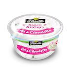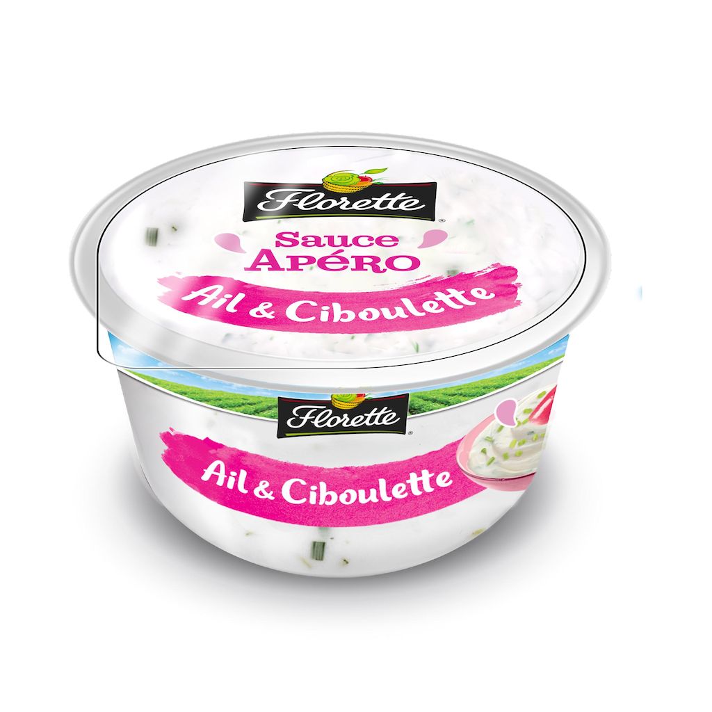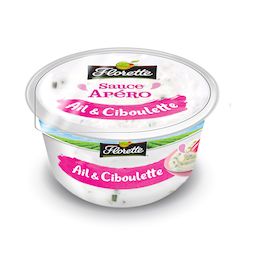 Eau, huile de colza, fromage frais à 20% de MG (15%) (LAIT demi écrémé pasteurisé, ferments lactiques), ciboulette (5%), amidon, vinaigre, sucre, jaune d'OEUF, MOUTARDE (eau, graines de MOUTARDE, vinaigre, sel), sel, ail, épaississant : gomme xanthane, poivre.
