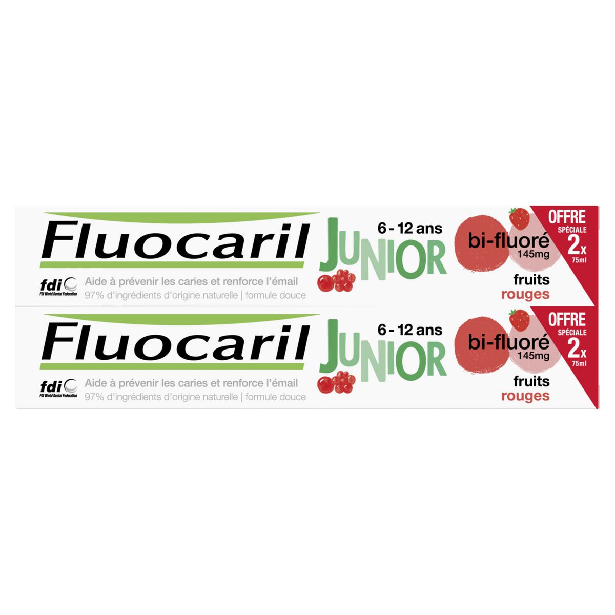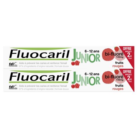 Fluocaril Junior, Dentifrice 6-12ans, Fruits Rouges, 2x75ml