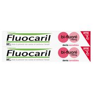 Le dentifrice Fluocaril Bi-Fluoré 145mg Dents Sensibles apaise et aide à soulager la sensibilité dentaire tout en renforçant les gencives et l'émail. Spécialement formulé pour les dents sensibles, sa formulation bi-fluorée (Fluorure de Sodium et Monofluorophosphate de Sodium) protège les dents contre les attaques acides et prévient l'érosion de l'émail, tout en favorisant la réduction et le contrôle de la sensibilité dentaire.