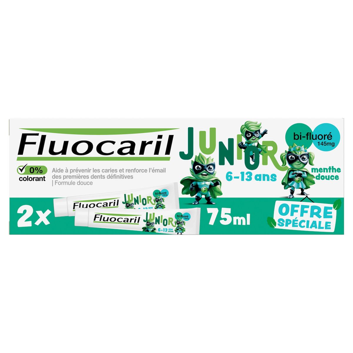 Fluocaril Junior Dentifrice 6-13 ans Menthe douce 2x75ml