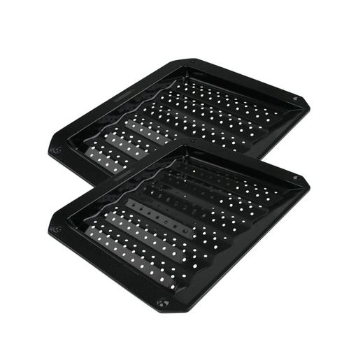 Ensemble de 2 Plaques ondulée et perforée pour four et barbecue en tôle 38 x 33 cm FM Professional Barbecue