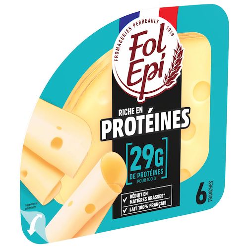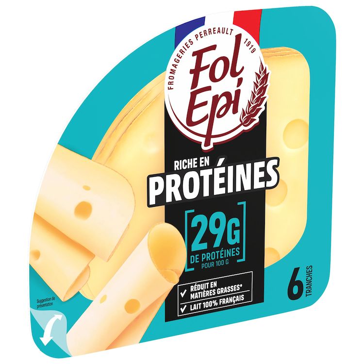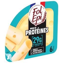 Fol Epi Riche en Protéines : Un plaisir sans compromis ! Des tranches de fromage riches en protéines, réduites en matière grasse et au bon goût fruité.