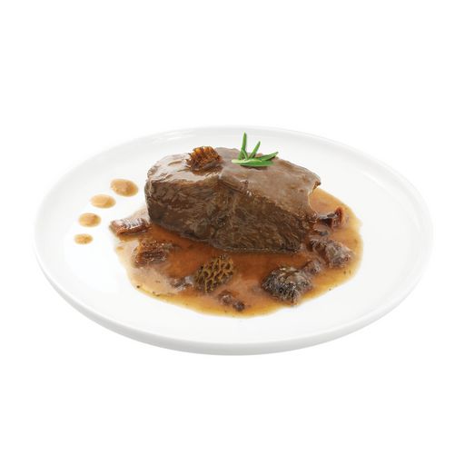 Ingrédients : Viande de bœuf 46% (Origine : France), eau, vin rouge 5,3% (contient SULFITES), oignon, morille 3,8%, Porto 3,2%, échalote, arômes naturels, CREME, BEURRE, farine de tapioca, fécule, vinaigre balsamique (vinaigre de vin, moût de raisin cuit - contient SULFITES), ail, fibres végétales, colorant : caramel ordinaire, plantes aromatiques, sel, poivre.