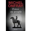 Force au peuple s'inscrit sous le signe de La Boétie qui enseigne dans son Discours de la servitude volontaire : Soyez résolus de ne plus servir, et vous voilà libres . Il n'est pas de sauveur suprême, sinon le peuple quand il a compris sa force et qu'il l'oppose à la dictature maastrichienne. Comment ? Dans Puissance et décadence j'avais indiqué des pistes : recouvrer la souveraineté , aimer la France , penser la civilisation , désurbaniser l'écologie , réinvestir le régalien , repenser la gauche contre la gauche , se désintoxiquer des médias. Force au peuple ajoute à ces propositions : résister à la réification , refuser la tyrannie des minorités , conjurer la guerre civile , lutter contre le libéralisme , sortir de l'Europe , réactiver le gaullisme , refuser l'homme déconstruit. En attendant la suite...