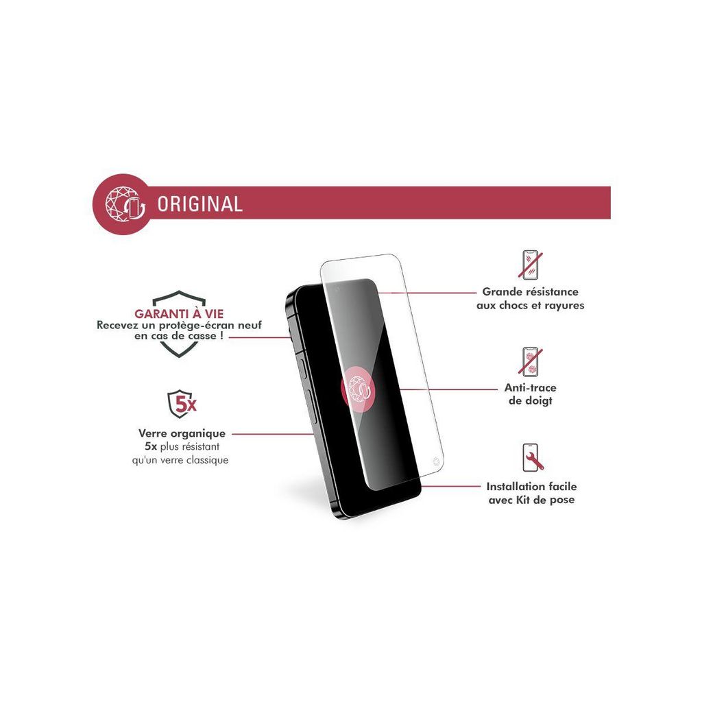 La durée de garantie est de 2 ans. Caractéristiques produit Type de protection Protection écran Marque compatible Google Modèle(s) compatible(s) Modèle compatible_protection GOOGLE Pixel 9 Pro XL Design Matière Verre organique Coloris extérieur Transparent Emplacemen