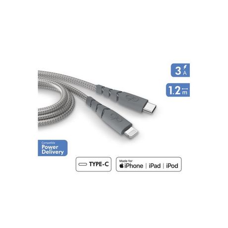 Câble Ultra renforcé USB C Lightning Force Power pour Apple iPhone 1.2 m Gris