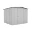 Abri métal FRASER 4,8m². Assemblage par panneaux métalliques de 0,35mm d'épaisseur. Fermeture via un loquet. Porte de 75x 172,5cm. Supports de scellement fournis. Résistance à 140km/h de vent. Dimensions intérieures : 222 x 214 cm - Dimensions extérieures : 226 x 318 cm - Dimensions hors tout : 226 x 218 x H 200 cm