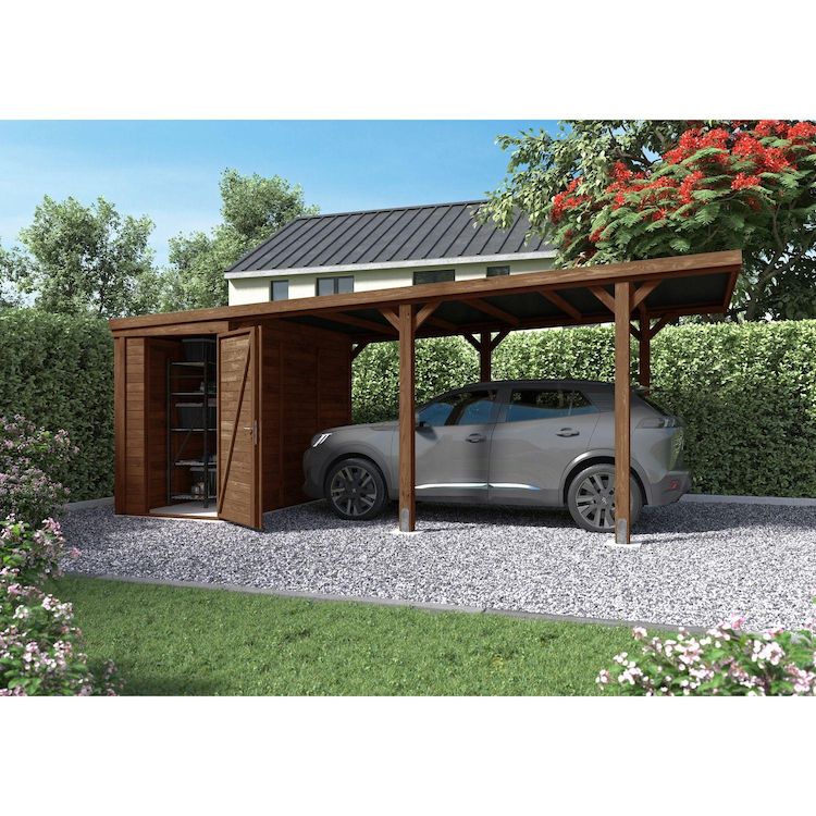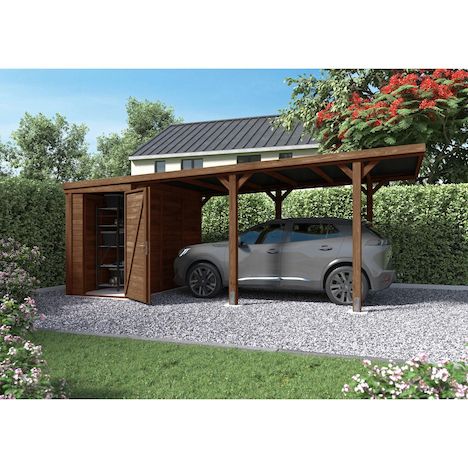 Carport avec remise - Bois traité autoclave - 15,8+4m² - LEON
