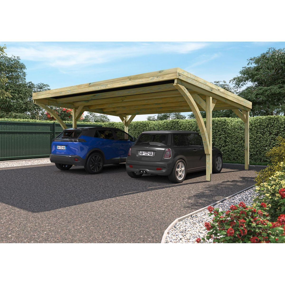 Carport toit plat - Bois traité autoclave - 2 voitures - 30,9 m² - VICTOR MODERN
