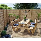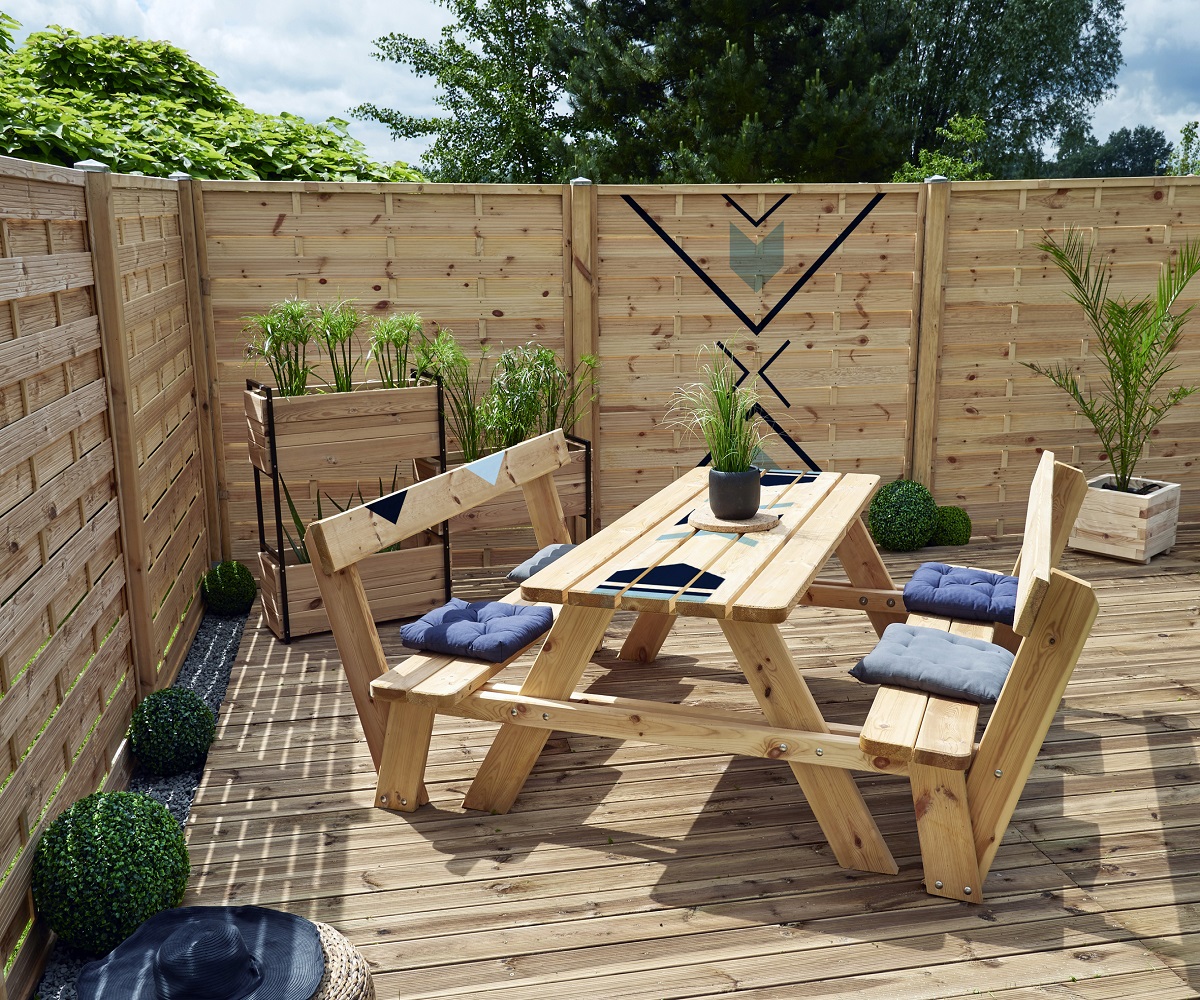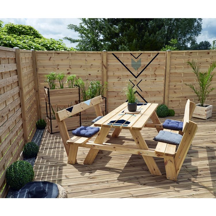 Partagez des déjeuners entre amis ou famille avec cette table de jardin MELISSE. La table de pique nique MELISSE est fabriquée en pin sylvestre traité Natural Effect pour lui apporter un aspect des plus naturel. Composée de 2 bancs fixes avec dossier, elle est idéale pour passer de longs moments en toute convivialité. Équipée d'un trou pour parasol, cette table de jardin peut accueillir jusqu'à 6 personnes autour d'un repas.
