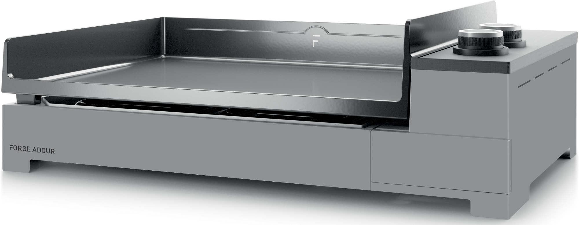 Forge Adour PREMIUMG60ANG Plancha gaz Forge Adour PREMIUMG60ANG doté d'une plaque en fonte émaillée, châssis acier double paroi avec revêtement 3 couches Noir et Gris. Piezzos électroniques intégrés dans manette et thermocouples de sécurité.