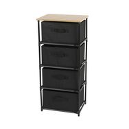 Découvrez l'étagère en matière intissé. Avec ces 4 tiroirs avec poignées, elle offrira tout le rangement nécessaire pour votre décoration.Informations sur l'étagère 4 tiroirs intissés:Dimensions: L. 39.2 x l. 29.7 x H. 89 cmTube en acier , plateau en panneau de particules, connecteur et accessoires en plastiquesToile intissée3Kg/tiroir maximumPoids: 3.040 kgà monter soi-même.