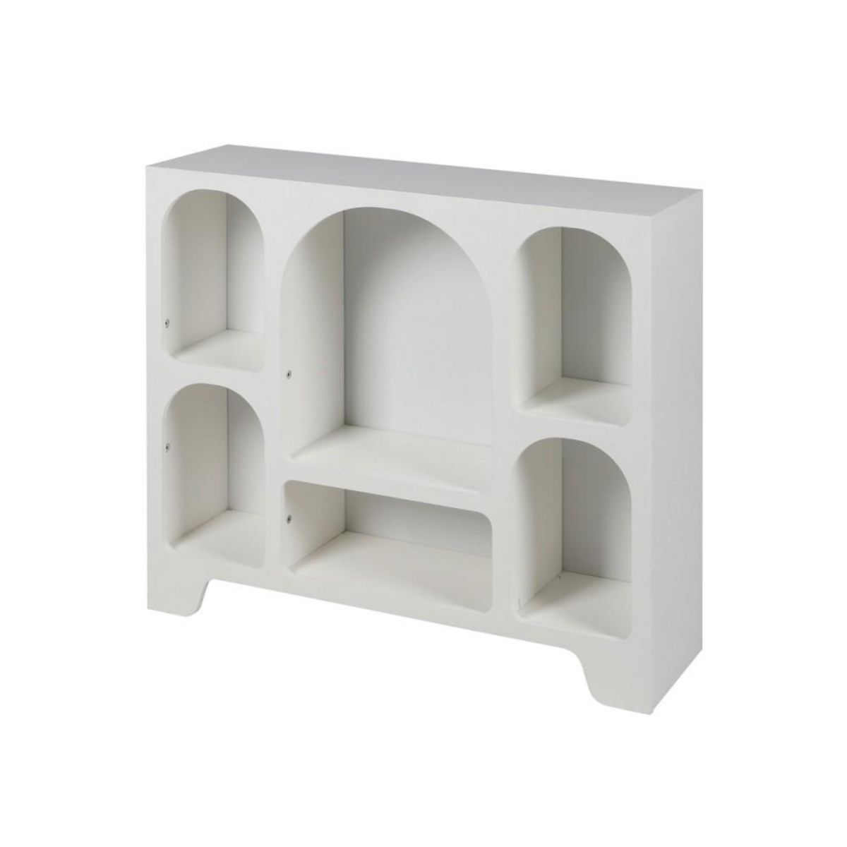 Découvrez l'étagère blanche Gallery au design organique. Avec ces 6 niches et ces dimensions généreuses de 90x24xH80cm, elle offrira tout le rangement nécessaire pour votre décoration.Informations sur l'étagère blanche Gallery:Dimensions: L.90 x l.24 x H.80 cmStructure en MDF peint en blancPanneaux