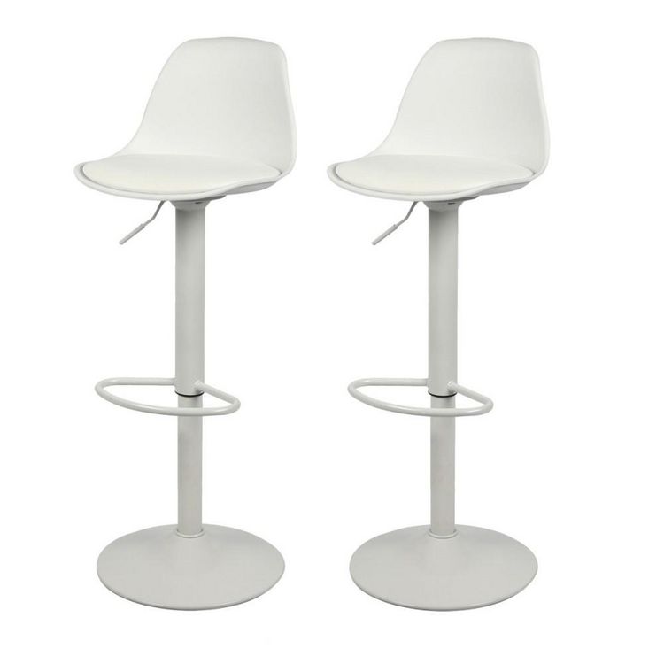 Lot de 2 tabourets de bar avec coussins effet cuir blanc mat