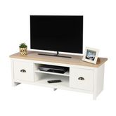 Découvrez le meuble TV VIRGINIA au design colonial. Avec ces 2 portes et 2 niches il offrira tout le rangement nécessaire pour vos accessoires.Caractéristiques du meuble TV VIRGINIA :Couleurs : blancDimension : L. 120 x l. 39.5 x H. 42.5 cmPlateau en bois creux 25mm recouvert de papier laminé imitation chênePanneau de particule 12/15mm recouvert de papier laminé blancPoids : 23 kgA monter soi-même