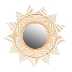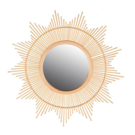Miroir soleil bambou D60Partenaire incontournable de la déco, ce miroir soleil fabriqué en bambou de 60 cm de diamètre, est l'accessoire déco boho naturel qu'il vous manquait.Information sur le miroir soleil bambou D60 :Dimensions : D. 60 cmMatière : verre, rotin, bambou