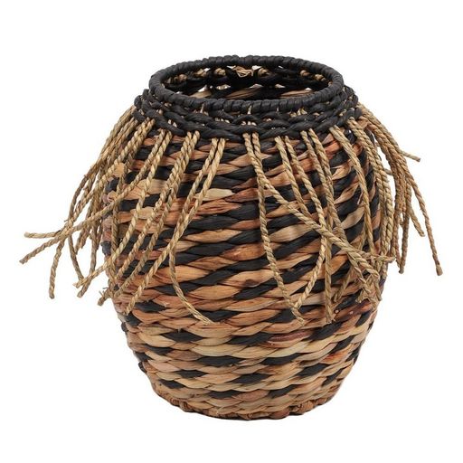 Panier jacinthe d'eau franges H27Charme organique, ambiance contemporaine garantie avec ce beau panier en jacinthe d'eau et papier avec franges de 23 cm de diamètre et 27 cm de hauteur.Informations sur le panier jacinthe d'eau franges H27 :Dimensions : D. 23 x H. 27 cmMatière : jacinthe d'eau, papie