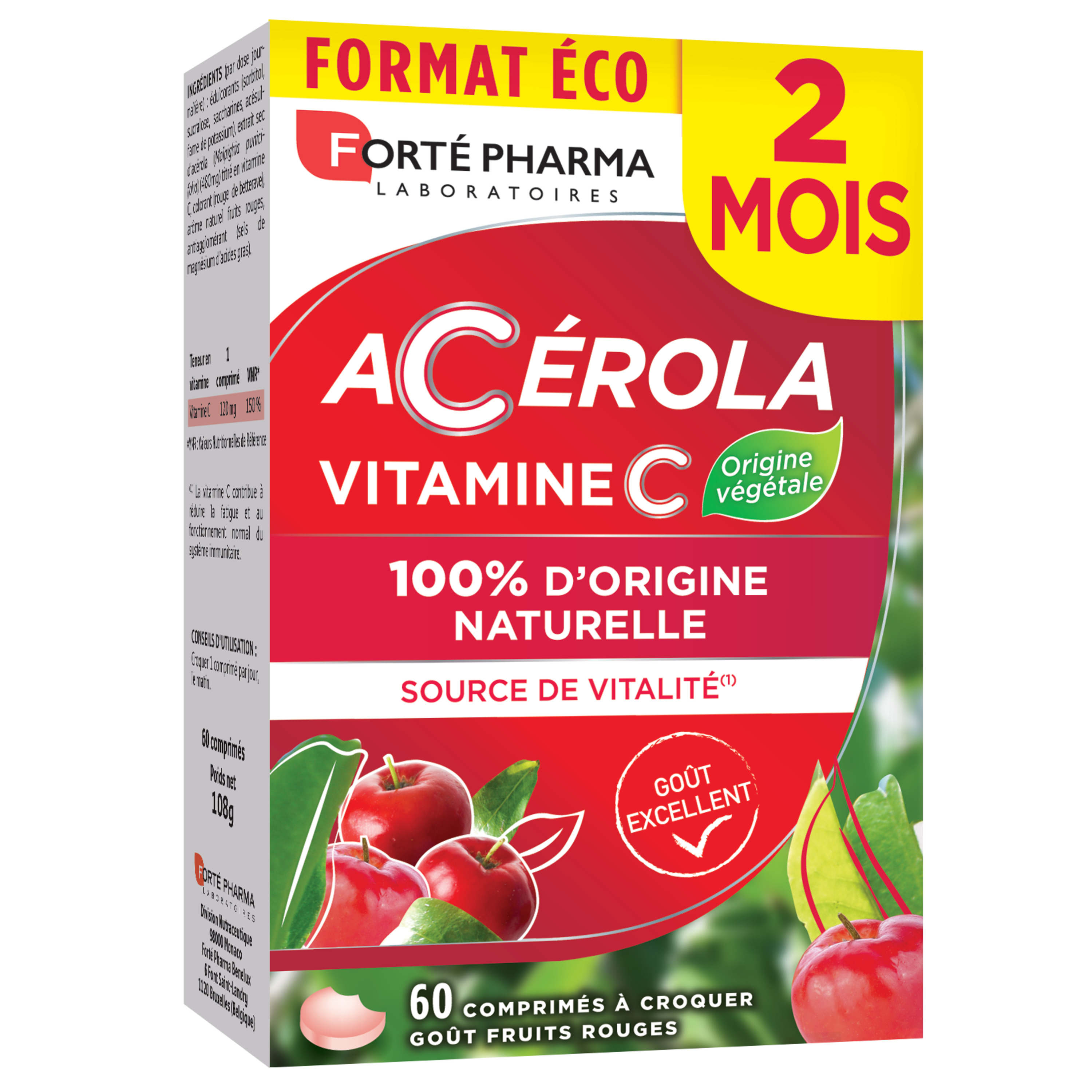 [Cet avis a été recueilli en réponse à une offre.] L'acerola vitamine c de la marque forte pharma tient ses promesses. Ce sont des comprimés à croquer aux bon goût de fruits rouges. Le format économique de ce packaging est top.