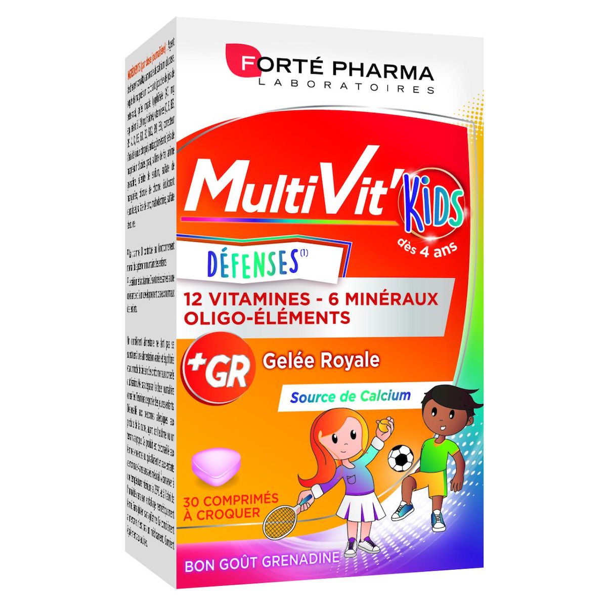 En comprimé facile à croquer au bon goût grenadine, sa formule associe la gelée royale, véritable concentré naturel nutritif, à 12 vitamines et 6 minéraux essentiels pour couvrir les besoins quotidiens, et :