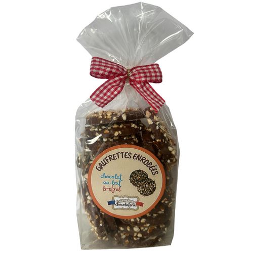GAUFRETTES ENROBEES chocolat au lait avec éclats de bretzel
