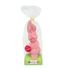 Ingrédients : chocolat blanc (sucre, beurre de cacao, LAIT en poudre, LACTOSERUM, LACTOSE, émulsifiant : lécithines (SOJA) ; arôme naturel de vanille), pépites au jus de framboise 15% (sucre, gélifiant : pectine, dextrose, eau, jus de framboise à base de concentré, jus de citron à base de concentré, colorant : concentré de carotte noire ; arôme naturel, colorant : anthocyanes), colorant : carmins. Cacao : 23% minimum.