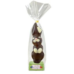 Ingrédients : sucre, pâte de cacao, beurre de cacao, matière grasse de lait anhydre, lait en poudre, poudre de lait écrémé, émulsifiant : lécithines ; arôme naturel de vanille, colorant : carmins. Cacao : 49% minimum