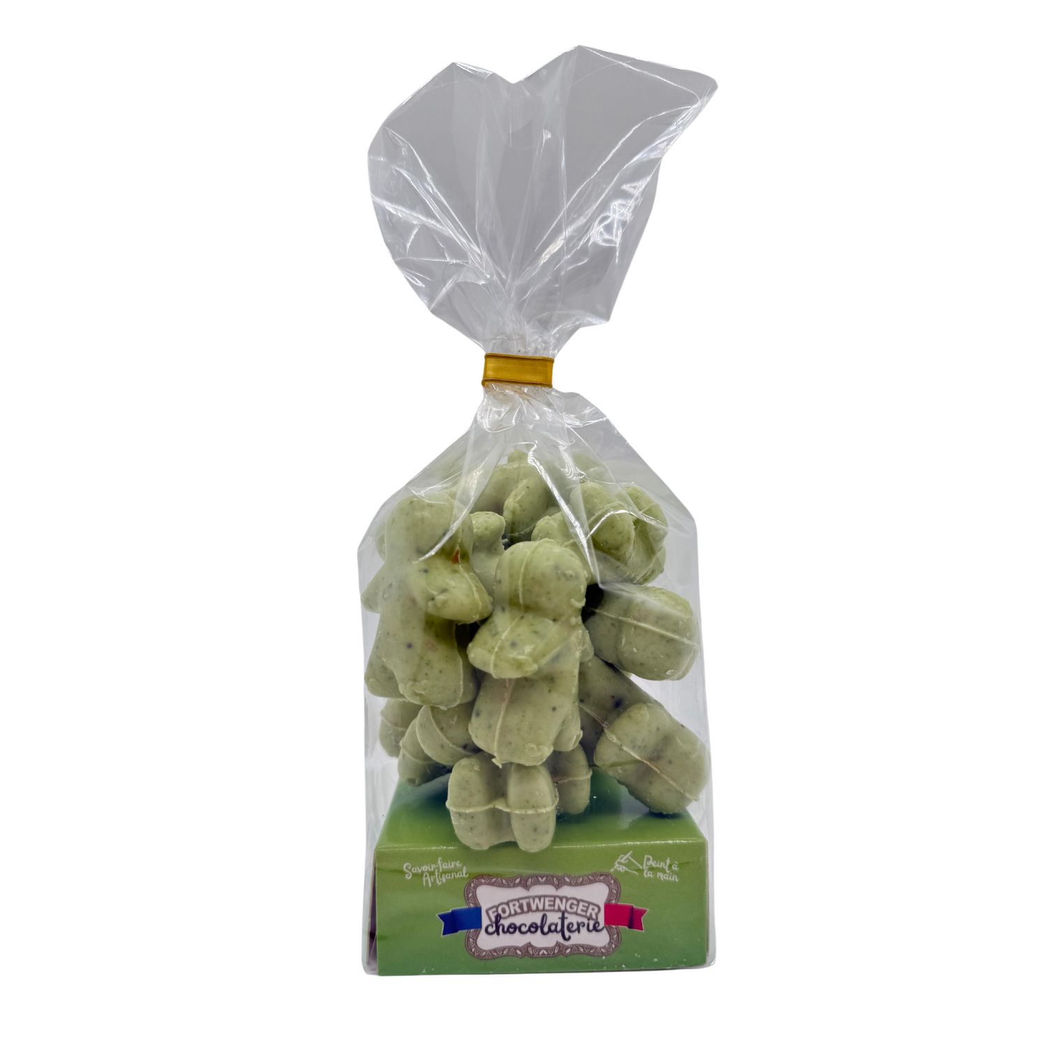 Moulage en chocolat blanc et pistache forme mini mannele à croquer Dubai Style 150g