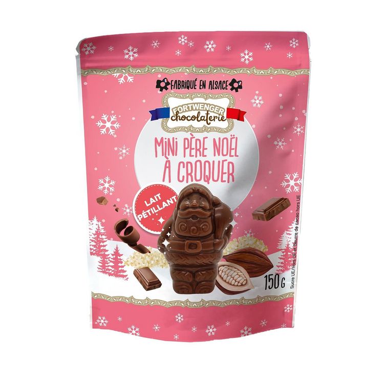 Mini père Noël à croquer (emballage doypack Fortwenger) au chocolat au lait et au sucre pétillant