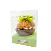 Demi coque en nougatine et demi coque en chocolat, garni œufs pralinés