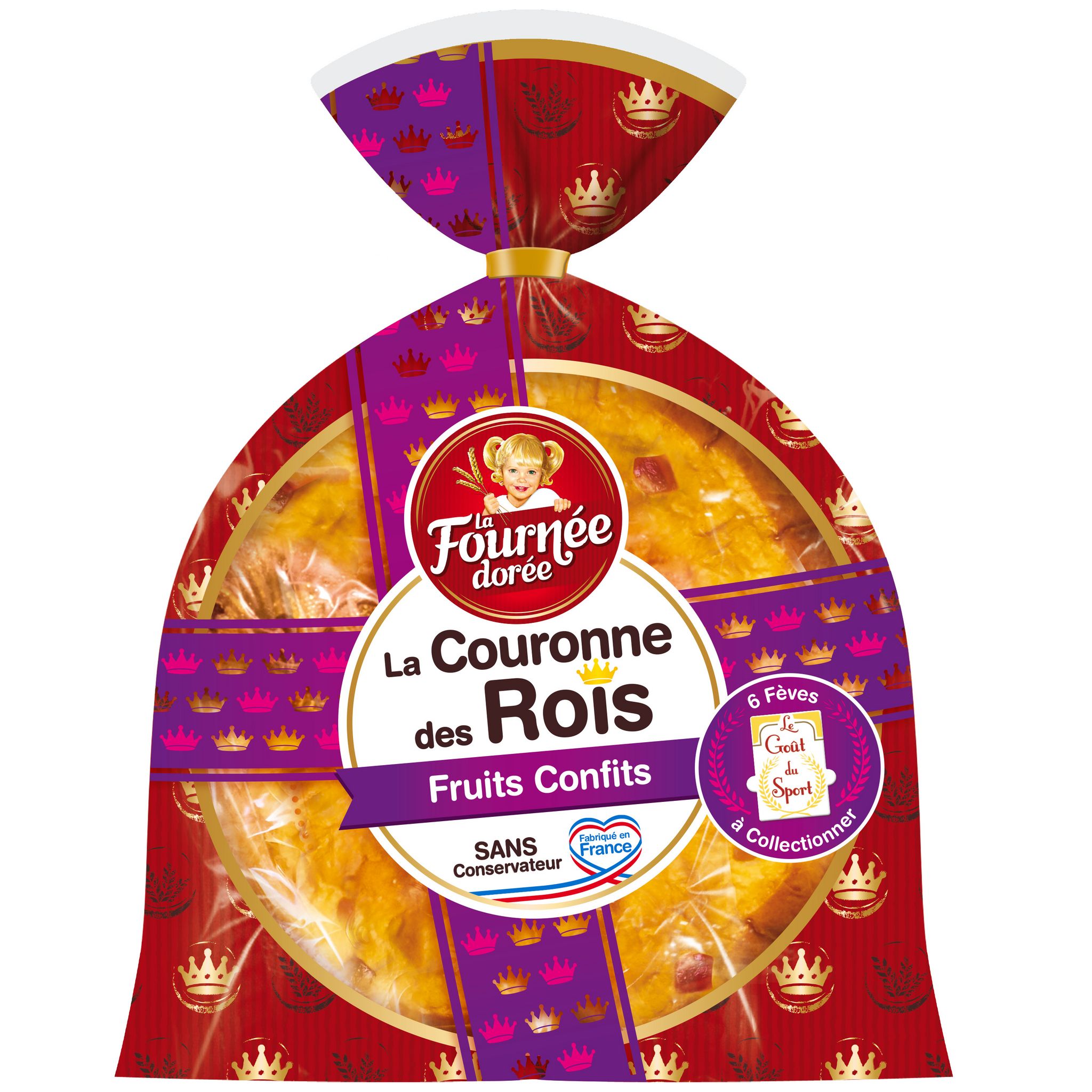 Vivez les fêtes comme des rois avec la Couronne des Rois aux fruits confits. C'est une Brioche en forme de couronne agrémentée de fruits confits. Partagez-la à l'épiphanie, et découvrez une de fèves à collectionner