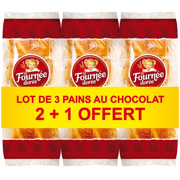 Un produit gourmand Un emballage individuel pour une meilleure conservation et praticité La fournée dorée lot de 3 x 8 pains au chocolat (2+1 offert) 1080 g
