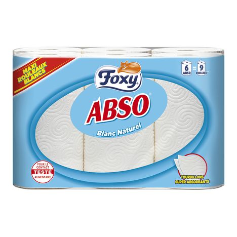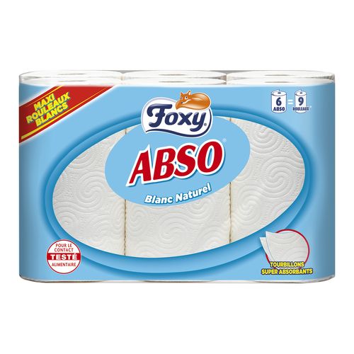 Essuie-Tout 2 plis 6 rouleaux = 9 rouleaux standard* (*par rapport à un essuie-tout standard de 43 feuilles) ET FOXY ABSO 6R 2P BLANC = 9R