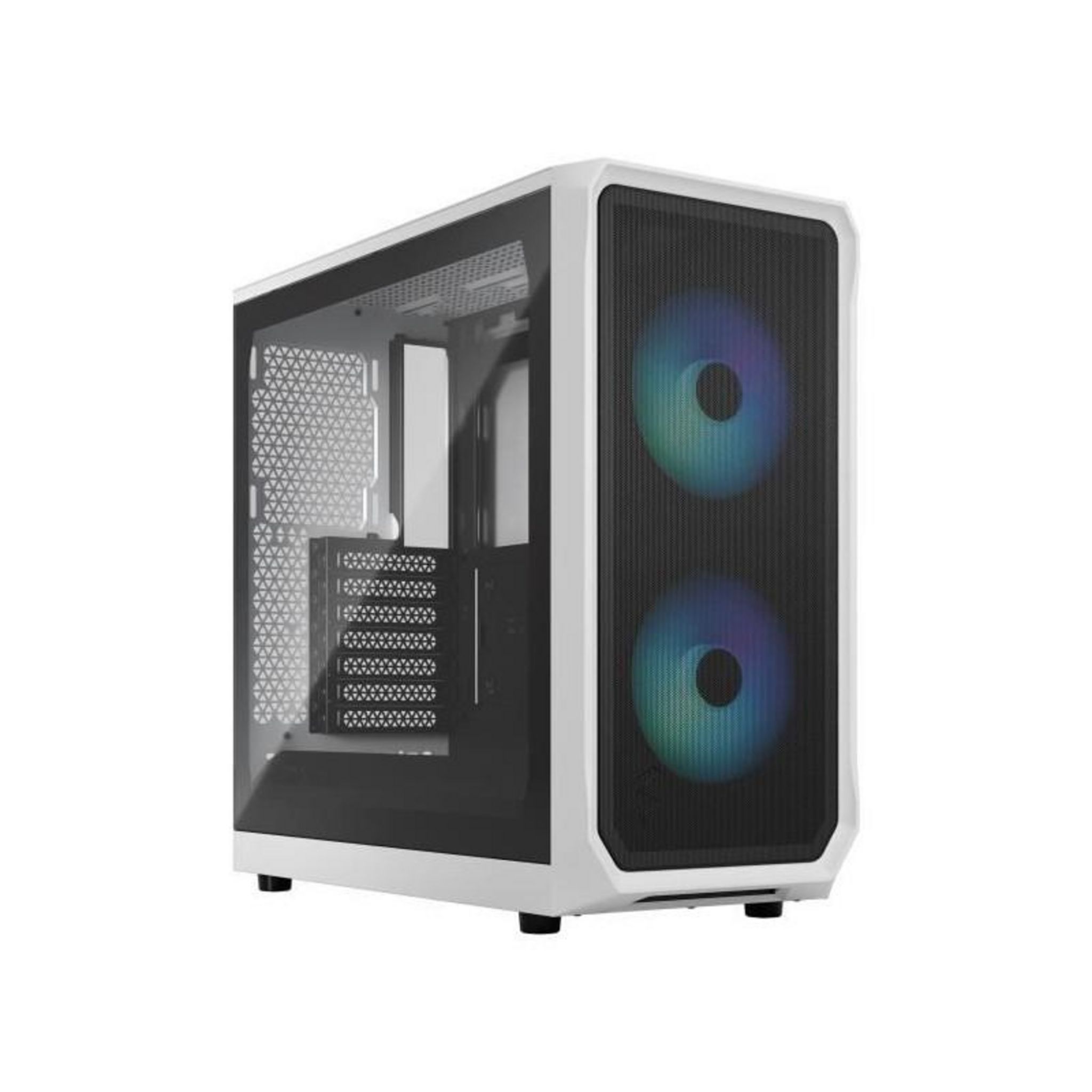 Le boîtier Fractal Design Focus 2 RGB White TG Clear Tint allie esthétique moderne et fonctionnalité. Son panneau latéral en verre trempé teinté offre une vue dégagée sur les composants tout en masquant les câbles pour un rendu épuré. La finition blanche lumineuse s'intègre parfaitement dans les setups gaming ou professionnels.