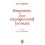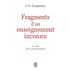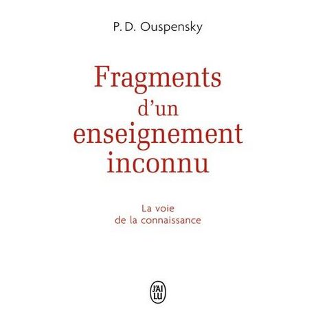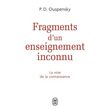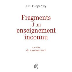Fragments d'un enseignement inconnu Depuis sa publication en 1949, Fragments d'un enseignement inconnu est reconnu comme la meilleure et la plus profonde introduction à l'oeuvre de Gurdjieff. Dans un style personnel et éloquent, Ouspensky nous confie le récit de huit années de travail passées auprès de Gurdjieff. Le savoir initiatique qu'il contient a été transmis oralement de maître à élève à travers les siècles , il modifie radicalement la vision de notre identité individuelle et de la réalité. Une oeuvre majeure qui délivre une connaissance cachée sur le passage de l'homme automate et endormi à l'homme conscient et libre.