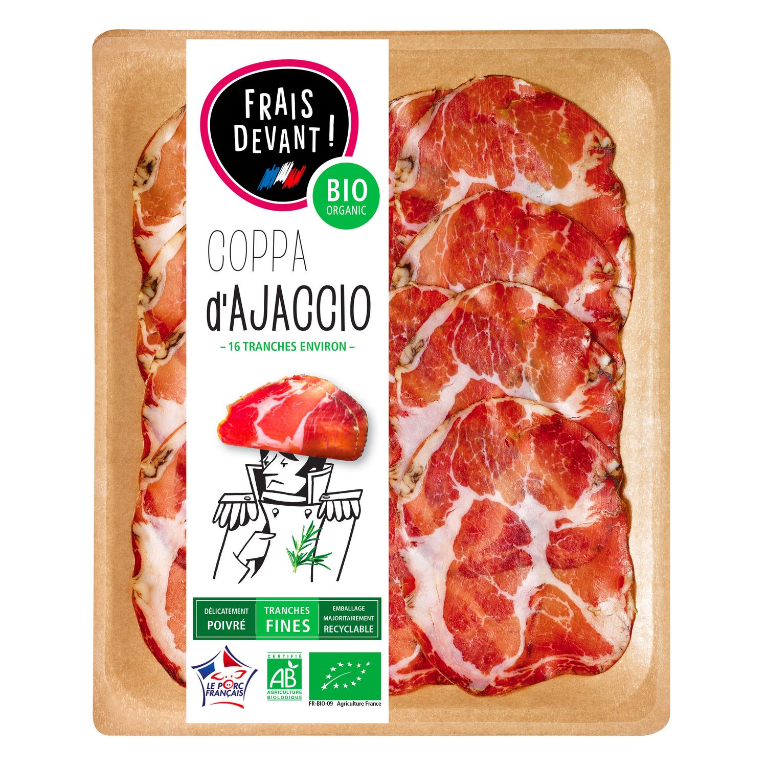 Issue de viande BIO française, cette coppa est fabriquée à partir de l'échine du cochon, macérée dans du sel. Poivrée et assaisonnée aux herbes du Maquis, elle est poussée dans un boyau puis séchée pour obtenir ce goût inimitable.