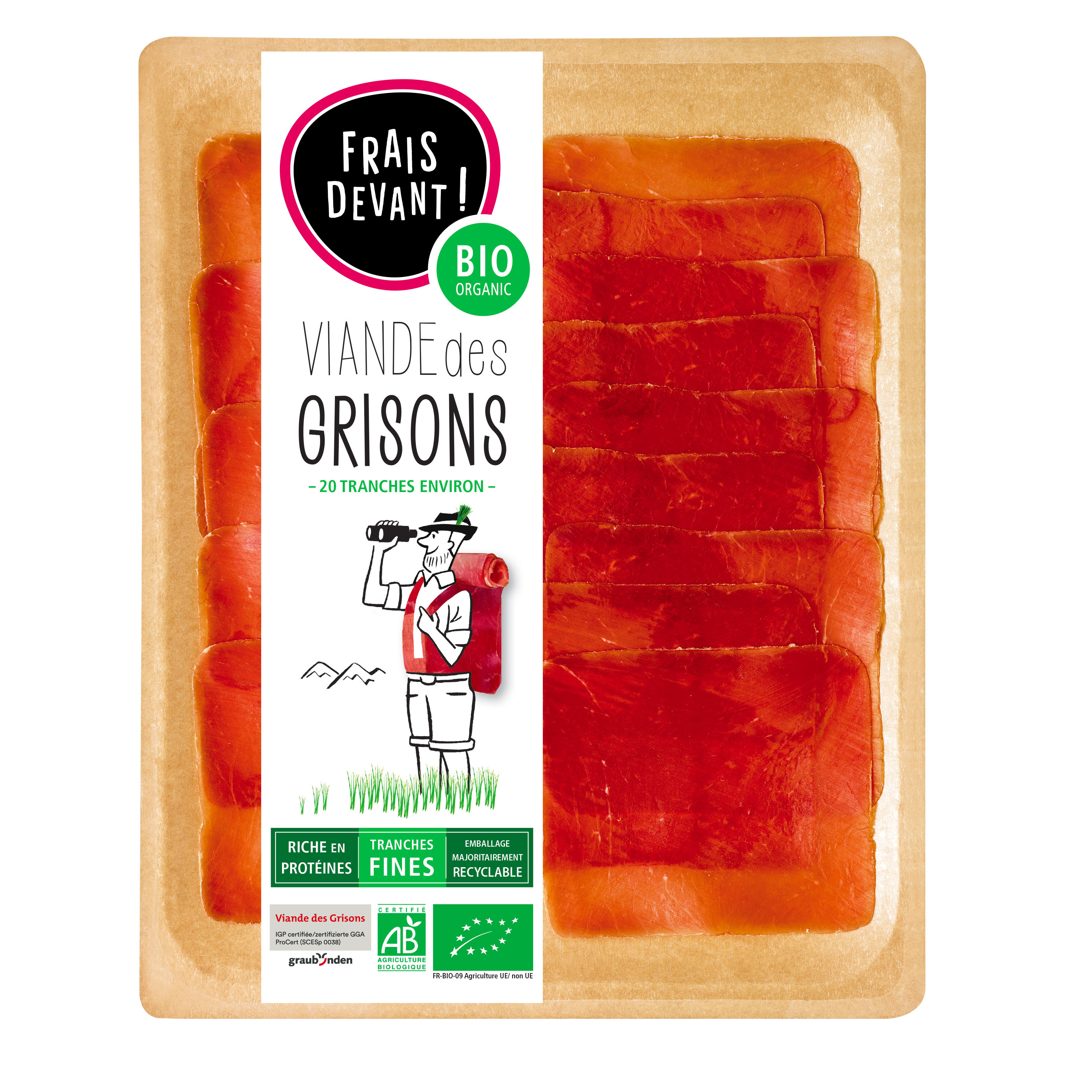 Cette spécialité Suisse est une viande de bœuf BIO assaisonnée et séchée dans la Vallée des Grisons. De forme typique rectangulaire et de couleur rouge, ce "tende de tranche" est naturellement maigre et riche en protéines