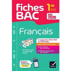 Des fiches de révision conformes au programme 2025-2026 en Français 1re (générale & technologique) : un outil 100 % efficace pour réussir ses contrôles et préparer les épreuves du bac de Français 2026. L'essentiel du nouveau programme en fiches détachables Sur les oeuvres au programme du bac 2026 et les méthodes de l'épreuve : - des fiches de cours, claires et visuelles - des quiz pour s'évaluer - des flashcards pour réactiver ses connaissances INCLUS : dans un dépliant détachable Une grande frise chronologique pour mieux contextualiser. OFFERT : un abonnement au site de révision www. annabac. com Pour accéder à des ressources complémentaires en français et dans d'autres matières : vidéos & podcasts, fiches, quiz, sujets d'annales corrigés...