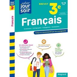 Le cahier complet pour des révisions efficaces l'année du Brevet - Réviser tout le programme de 3e etse préparer au Brevet grâce à une structure simple et efficace - des leçons claires et synthétiques - toutes les règles en grammaire et conjugaison, orthographe et vocabulaire - des exemples éclairants - + de 200 exercices pour s'entraîner - des Brevets blancs - un cahier central détachable avec les corrigés - des annexes : tableau des modes et des temps, principales fonctions, méthodologie et vocabulaire pour expliquer un texte - L'essentiel du programme en mémos visuels Des schémas et cartes mentales sur les rabats : valeurs du présent, compléments circonstanciels, passé simple de l'indicatif, connecteurs logiques, propositions subordonnées, accorder le participe passé, phrase emphatique, valeurs du conditionnel présent - Aller plus loin avec des compléments numériques accessibles gratuitement en ligne : des quiz interactifs pour s'entraîner