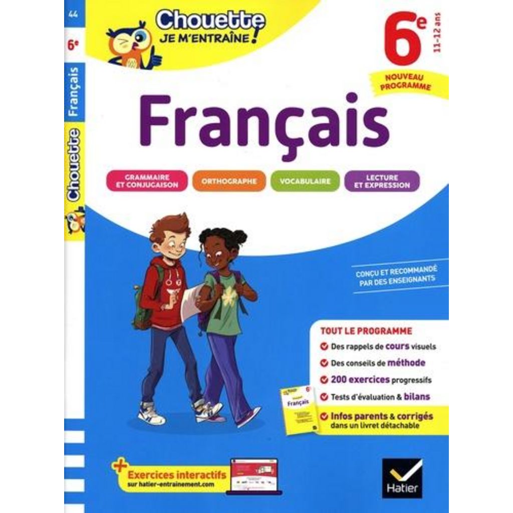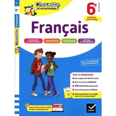 Le cahier d'entraînement Français 6e pour réviser les points clés du programme et s'entraîner à son rythme. Avec 200 exercices corrigés, des cartes mentales et un livret parents détachable ! Sur chaque thème du nouveau programme de Français en 6e - Un rappel de cours clair et visuel - Des exercices progressifs - Des conseils pour comprendre et réussir Sur les revers de couverture De grandes cartes mentales pour mémoriser les notions essentielles Dans le livret parents détachable - Les corrigés détaillés des exercices, avec le commentaire des difficultés - Des informations sur le programme - Des conseils pour aider votre enfant dans son travail Sur le site (Lien -> https : //entrainement. editions-hatier. fr/) De nombreuses ressources complémentaires pour réviser autrement : - des exercices interactifs en Français et en Maths - des dictées sonorisées - des activités audio en Anglais