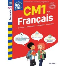 Un cahier complet pour des révisions efficaces Tout le programme de français CM1 pour réviser et progresser ! Cahier Jour Soir : une collection conçue et recommandée par les enseignants. - Une structure simple et claire pour progresser en français : - Les leçons pour réviser tout le programme : grammaire, orthographe, conjugaison, vocabulaire - Toutes les règles et de nombreux exemples pour bien comprendre - Des exercices progressifs pour s'entraîner tout au long de l'année - Le + accessible par un QR code : - des mémos visuels : des schémas et cartes mentales avec l'essentiel à retenir, pour une mémorisation visuelle efficace - des quiz numériques interactifs, sur toutes les notions du programme, pour s'évaluer et progresser de manière ludique - Le + pour les parents : un cahier central détachable avec tous les corrigés.