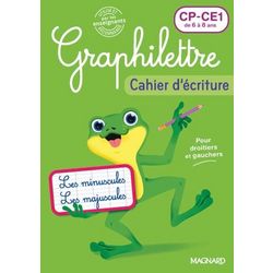 Des activités ludiques et variées pour s'entraîner et progresser CP-CE1 (6-8 ans) - Ce cahier d'écriture permet à l'enfant d'accéder à la maîtrise du tracé des lettres majuscules cursives et de réviser les lettres minuscules et les chiffres selon une progression rigoureuse. - Des pages de révision ponctuent les différentes étapes de l'apprentissage. - Des pages de récréation permettent à l'enfant de se perfectionner en s'amusant. - En fin d'ouvrage, une réglette avec les modèles d'écriture à découper. Pour droitiers et gauchers Utilisé et recommandé par les enseignants