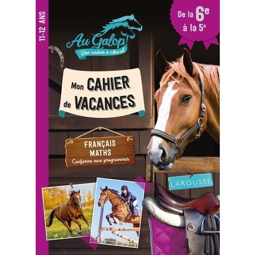 En savoir +Tu adores les chevaux et l'équitation ? Tu es fan de l'émission AU GALOP ? Voici le cahier idéal pour réviser pendant l'été le programme de la 6e et préparer la rentrée en 5e sans obstacles ! Aux côtés de ton animal favori, tu découvriras des exercices variés, progressifs et ludiques pour revoir les notions essentielles en FRANCAIS, MATHS et ANGLAIS.