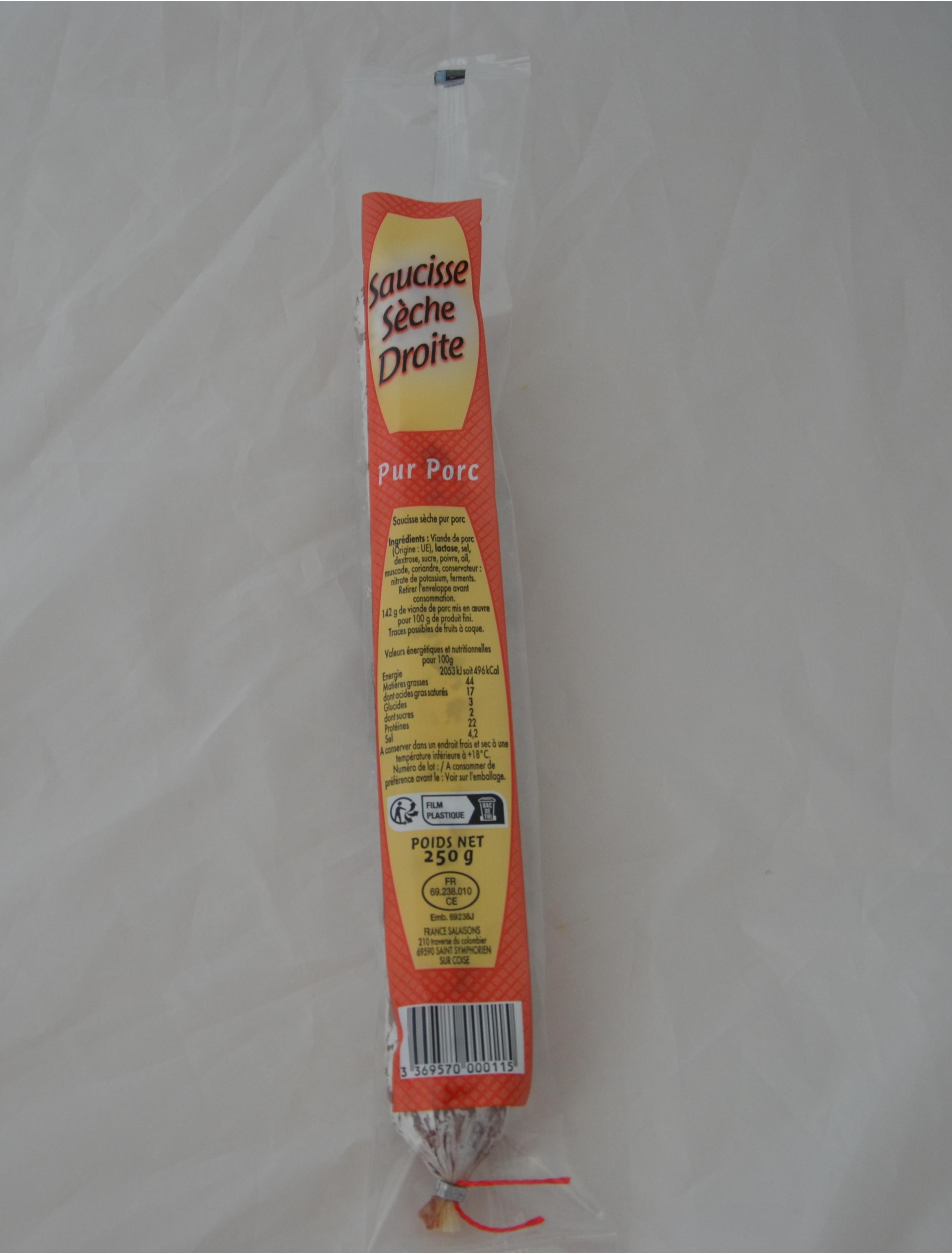Saucisse sèche droite avec un goût typique de salaisons sèche.