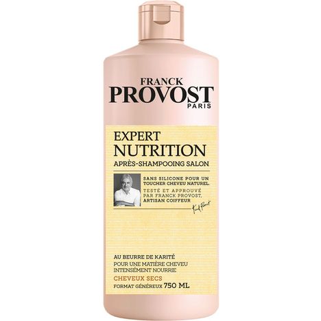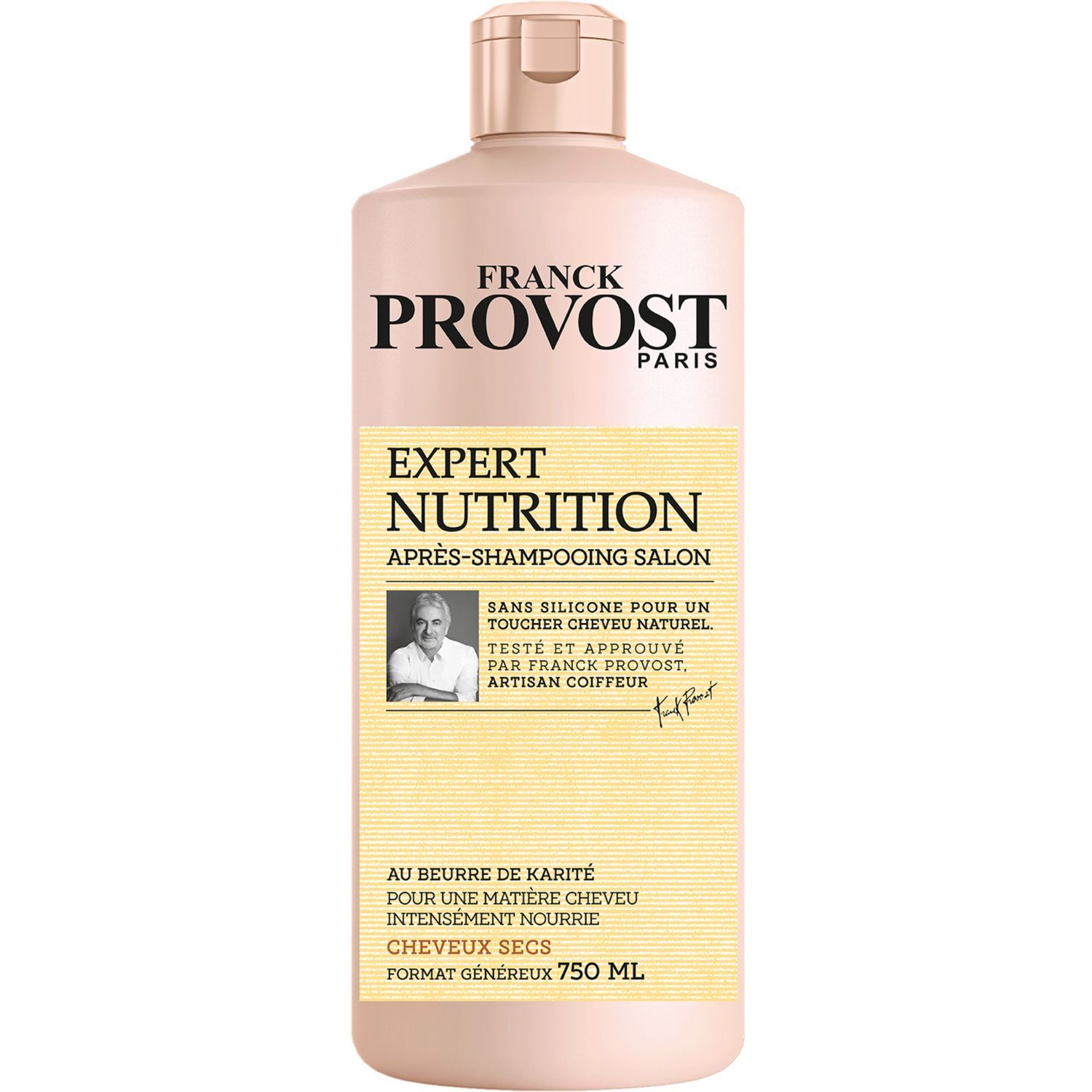 Franck Provost Expert Nutrition Après-Shampooing Soin Professionnel Nutrition Intense 750.0ml Après-shampooing professionnel au beurre de karité pour les cheveux secs, rêches. Résultat : une chevelure souple et soyeuse.